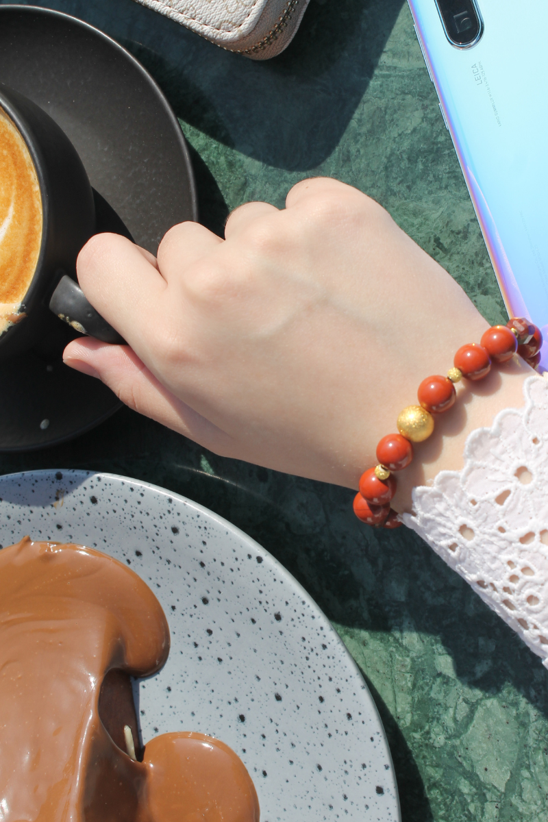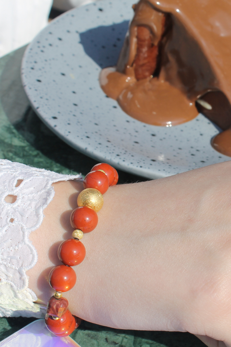 Akel Jasper Doğal Taş Tasarım Bileklik-1 (925 Ayar Gümüş Üzeri 14K Altın Kaplama)