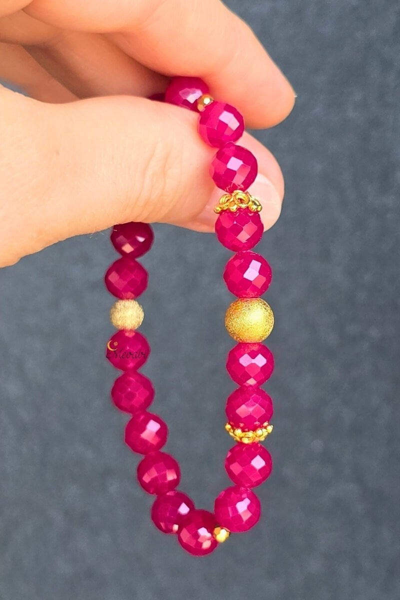 Alanur Rubellit Turmalin Doğal Taş Tasarım Bileklik-3 (925 Ayar Gümüş Üzeri 14K Altın Kaplama)