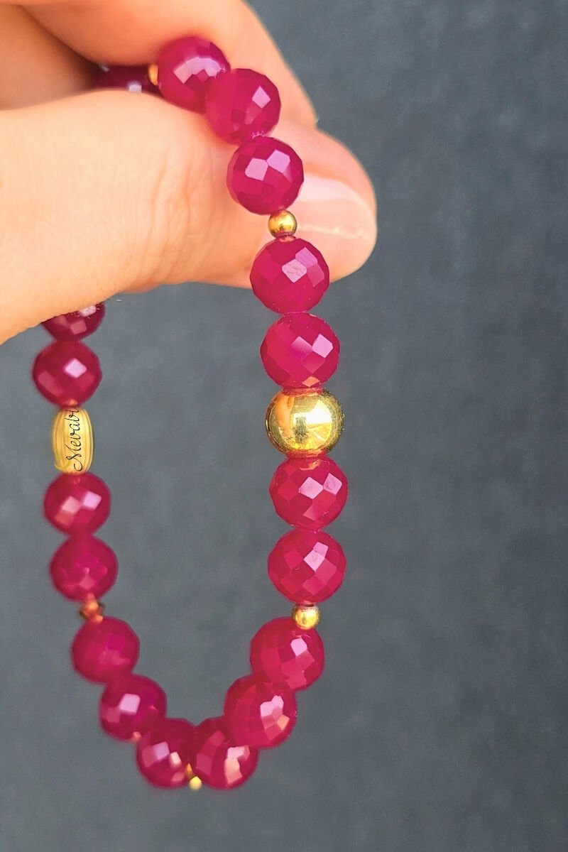 Alanur Rubellit Turmalin Doğal Taş Tasarım Bileklik-1 (925 Ayar Gümüş Üzeri 14K Altın Kaplama)