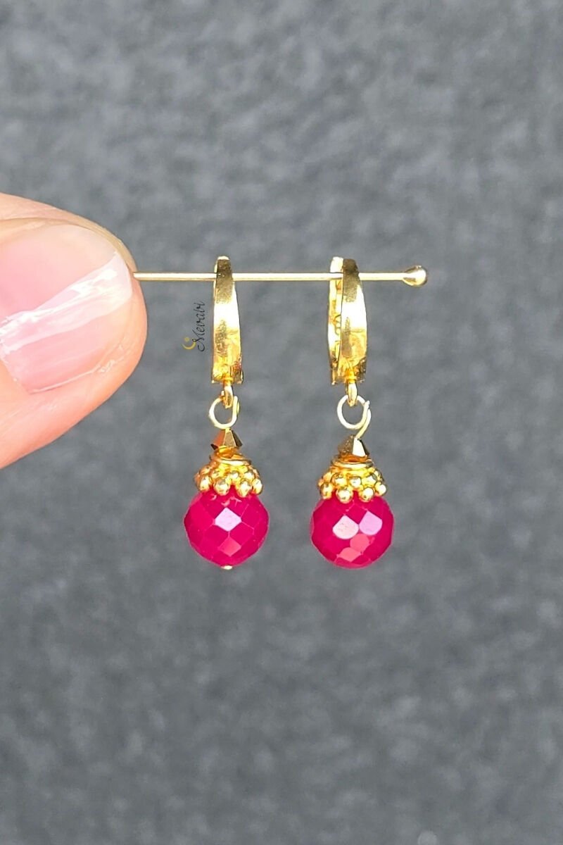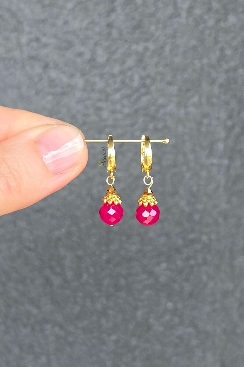 Alanur Rubellit Turmalin Doğal Taş Tasarım Küpe-1 (925 Ayar Gümüş Üzeri 14K Altın Kaplama)
