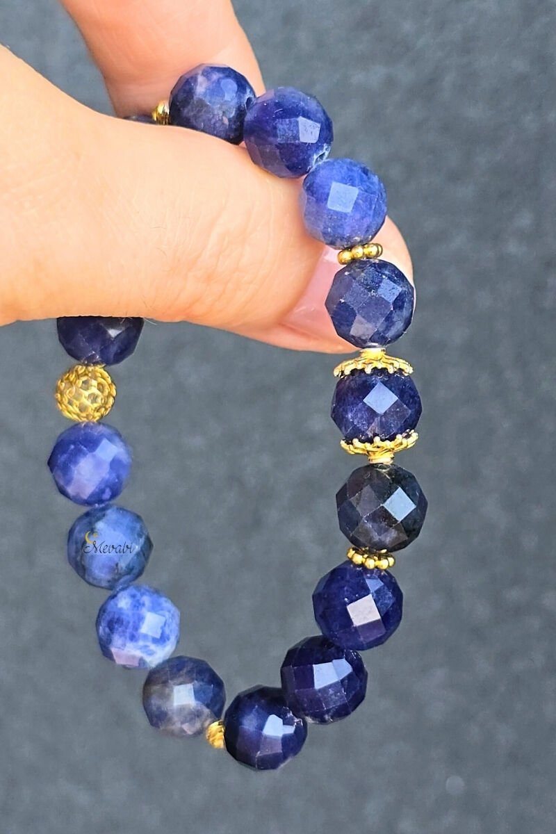 Azura Sodalit Doğal Taş Tasarım Bileklik-4 (925 Ayar Gümüş Üzeri 14K Altın Kaplama)