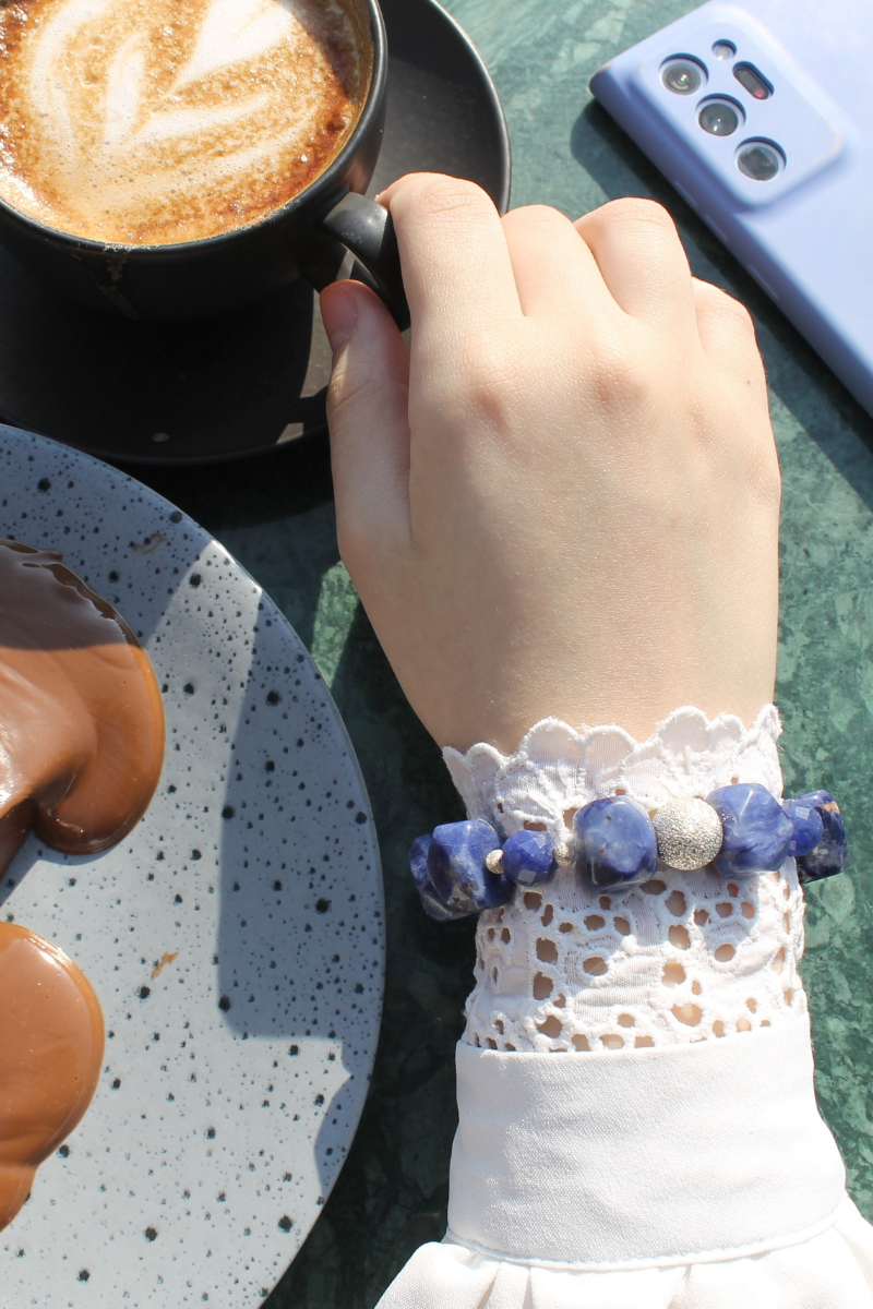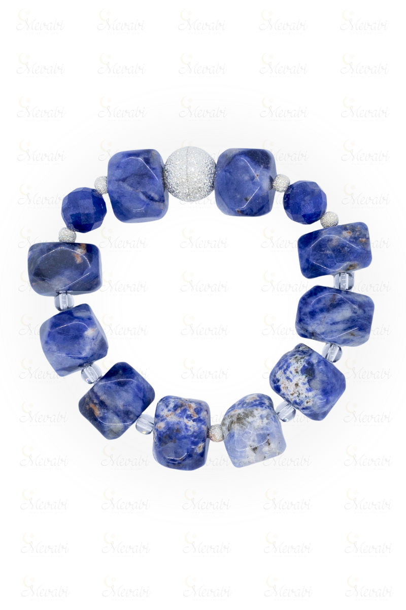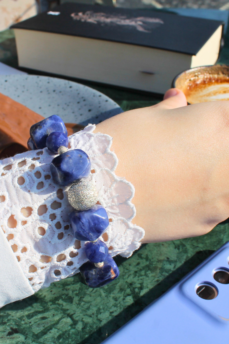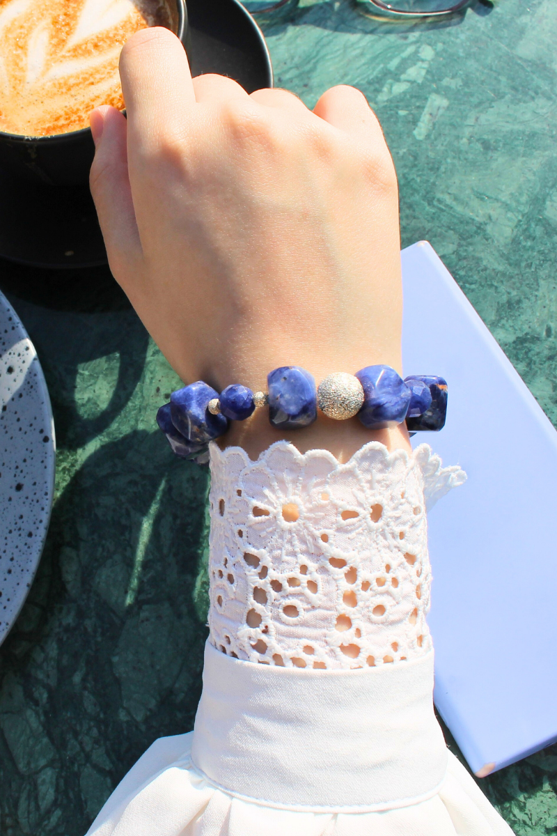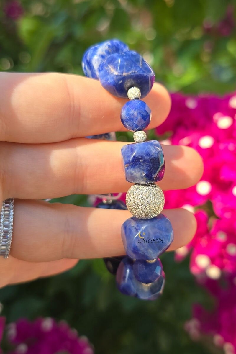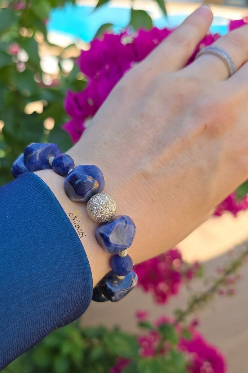 Azura Sodalit Doğal Taş Tasarım Bileklik-1 (925 Ayar Gümüş)