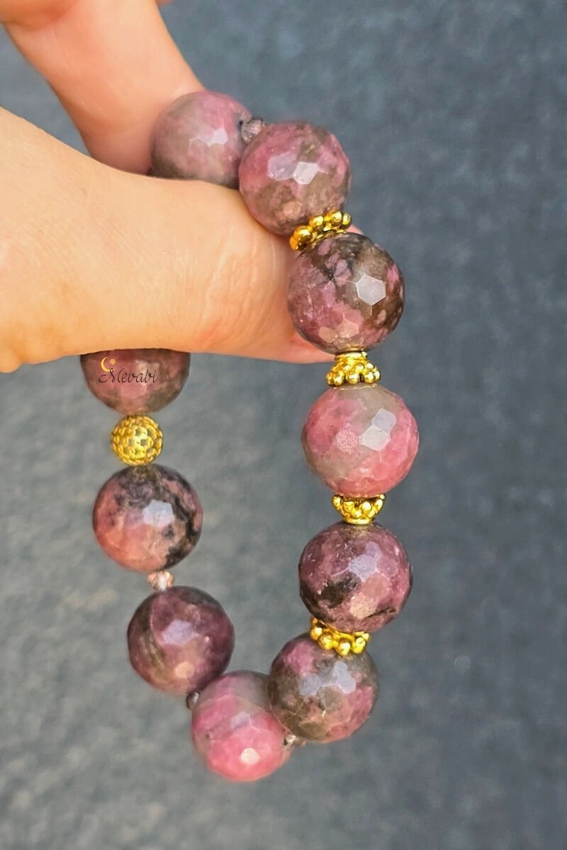 Behire Rodonit Doğal Taş Tasarım Bileklik-1 (925 Ayar Gümüş Üzeri Altın Kaplama)