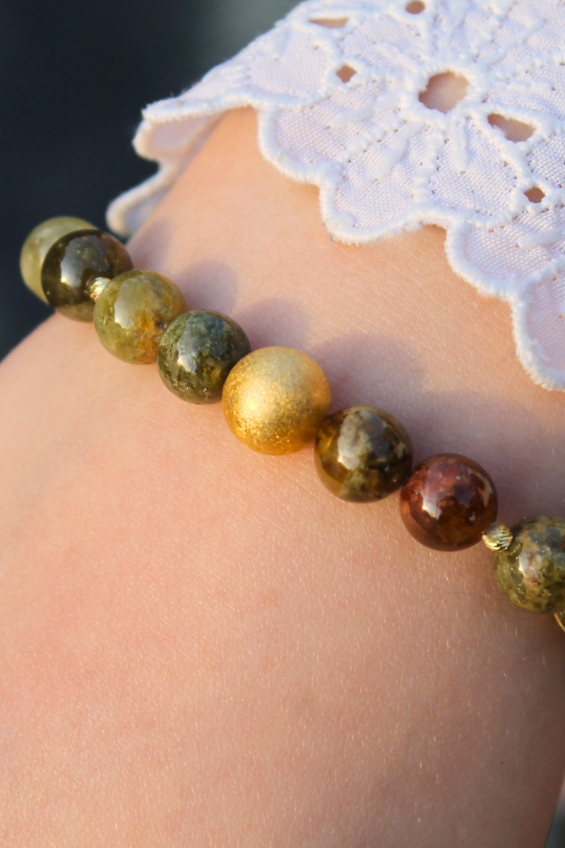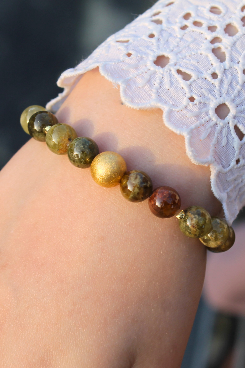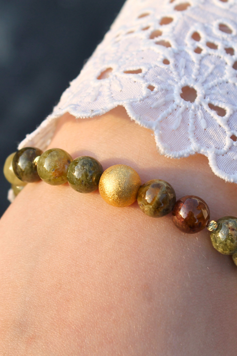 Beray Granat Yeşil Doğal Taş Tasarım Bileklik-1 (925 Ayar Gümüş Üzeri 14K Altın Kaplama)