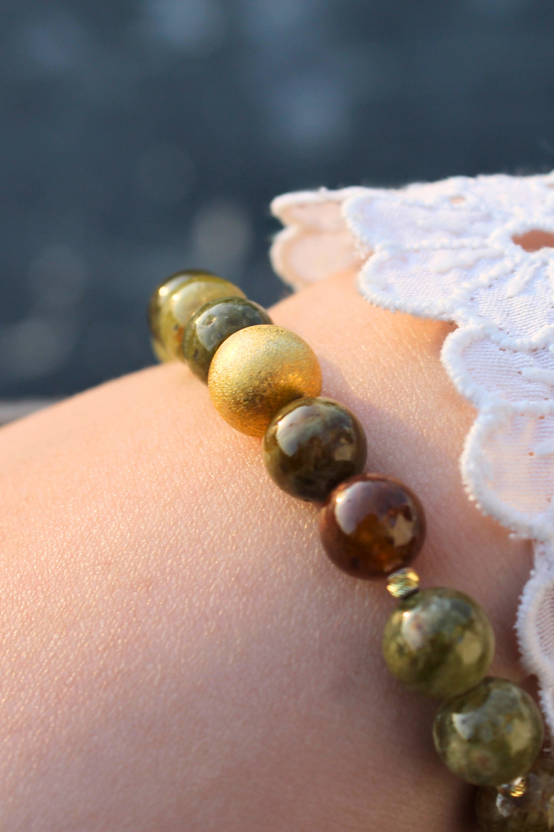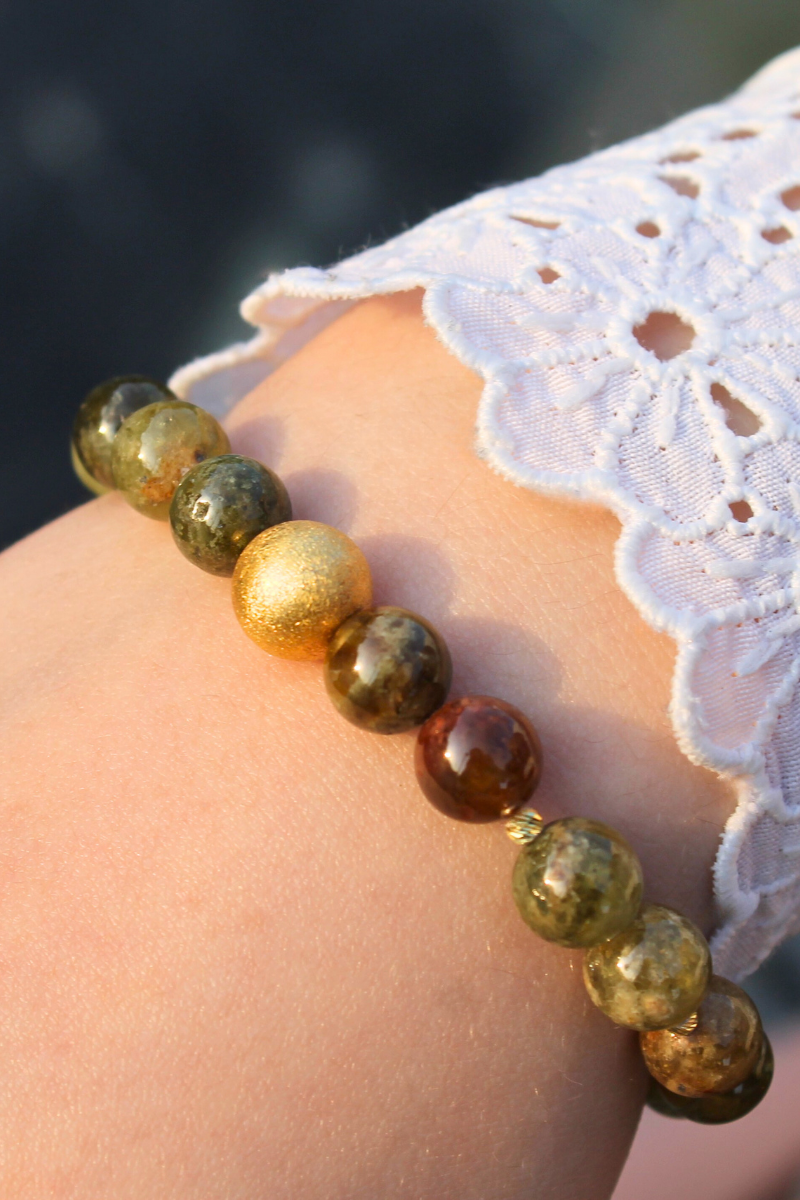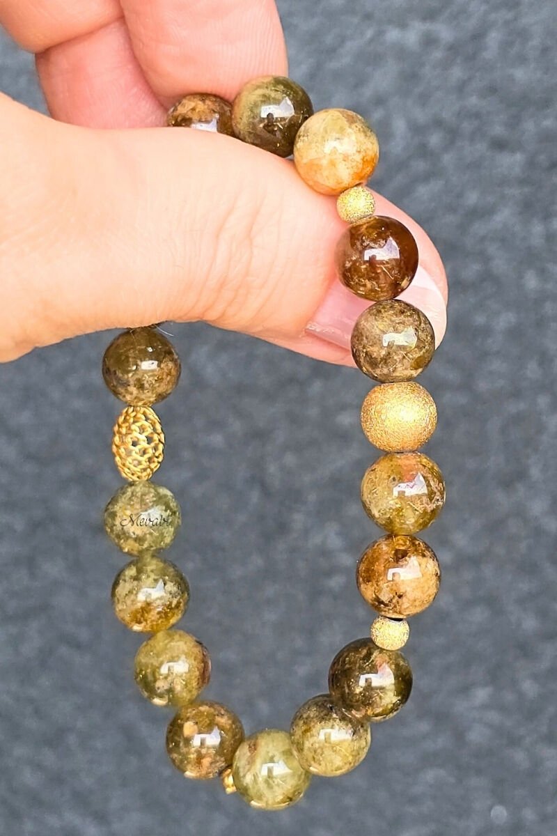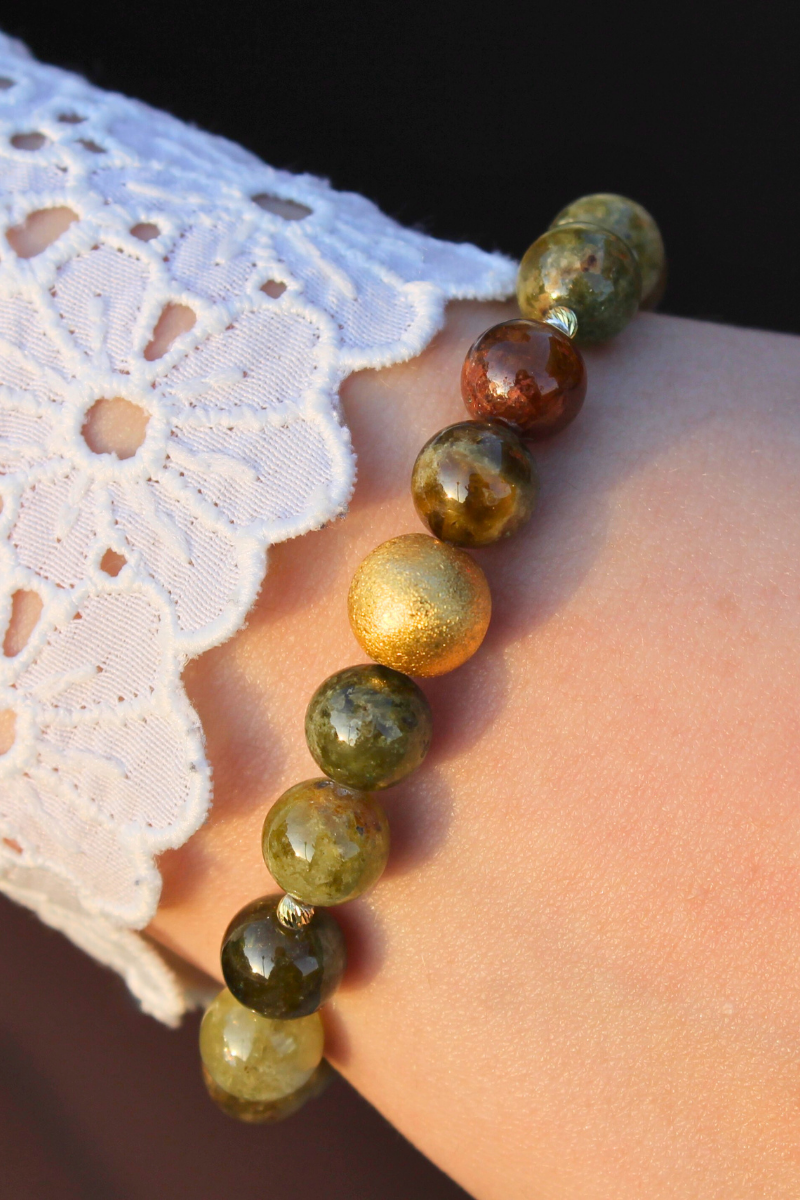 Beray Granat Yeşil Doğal Taş Tasarım Bileklik-1 (925 Ayar Gümüş Üzeri 14K Altın Kaplama)