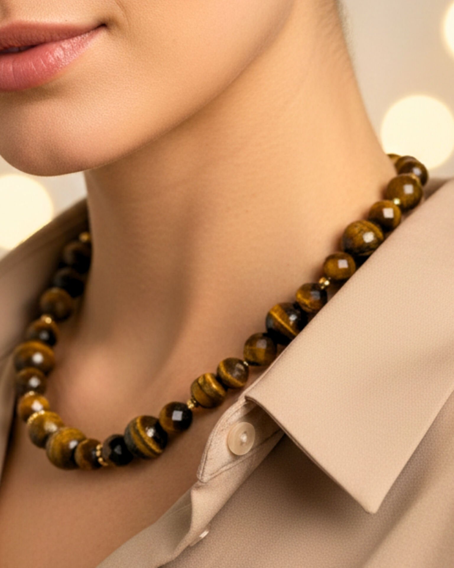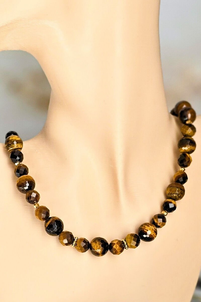 Berşan Kaplan Gözü Doğal Taş Tasarım Kolye (925 Ayar Gümüş Üzeri 14K Altın Kaplama)