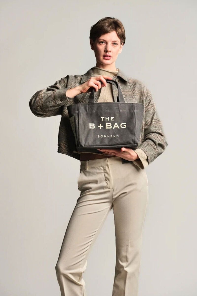 Bonheur Kanvas Çanta, günlük kullanım için şık ve çok yönlü alternatiflerdendir. Çanta, ön yüzündeki tipografi ve logo işleme detayıyla; geniş, dikdörtgen bir siluete sahiptir.