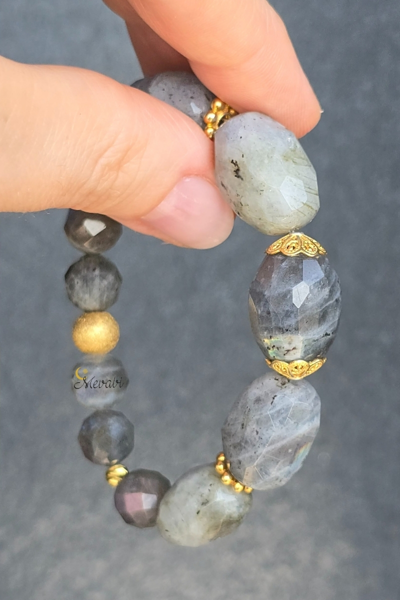 Dide Labradorit Doğal Taş Tasarım Bileklik-2 (925 Ayar Gümüş Üzeri 14K Altın Kaplama)