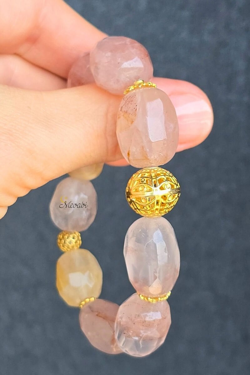 Dora Rutilli Kuvars Doğal Taş Tasarım Bileklik-3 (925 Ayar Gümüş Üzeri 14K Altın Kaplama)