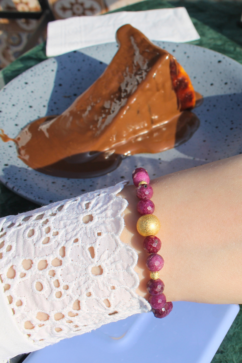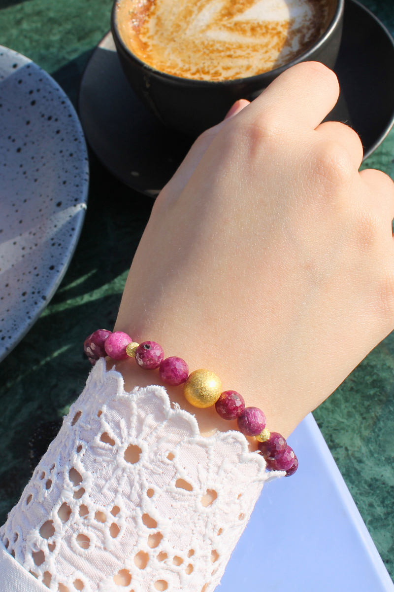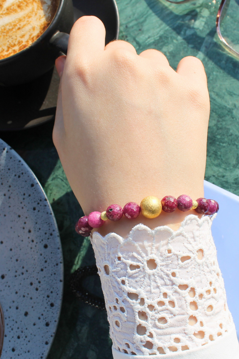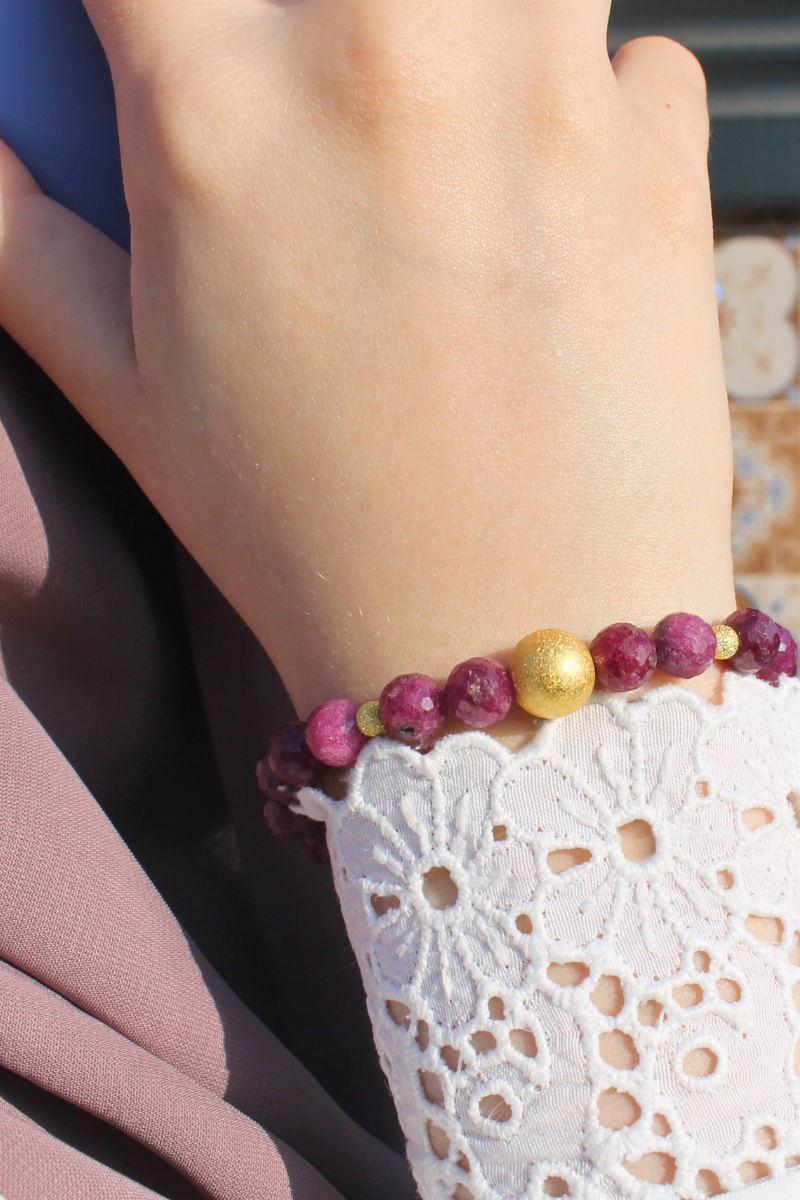 Ece Yakut Doğal Taş Tasarım Bileklik-1 (925 Ayar Gümüş Üzeri 14K Altın Kaplama)
