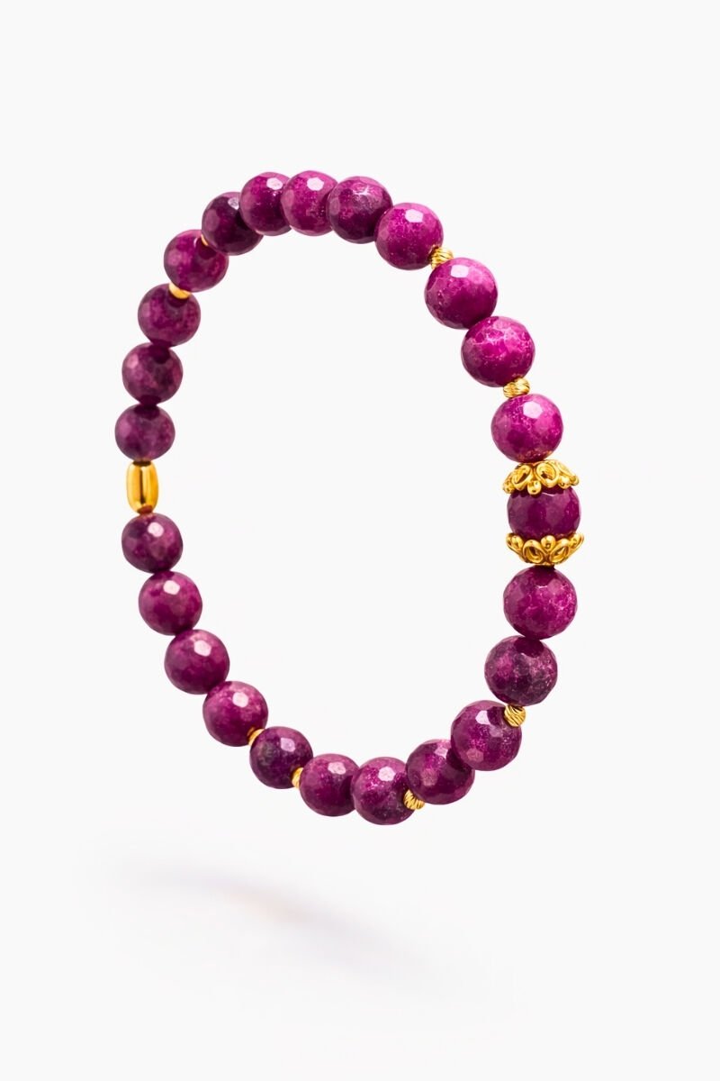 Ece Yakut Doğal Taş Tasarım Bileklik-8 mm (925 Ayar Gümüş Üzeri 14K Altın Kaplama)
