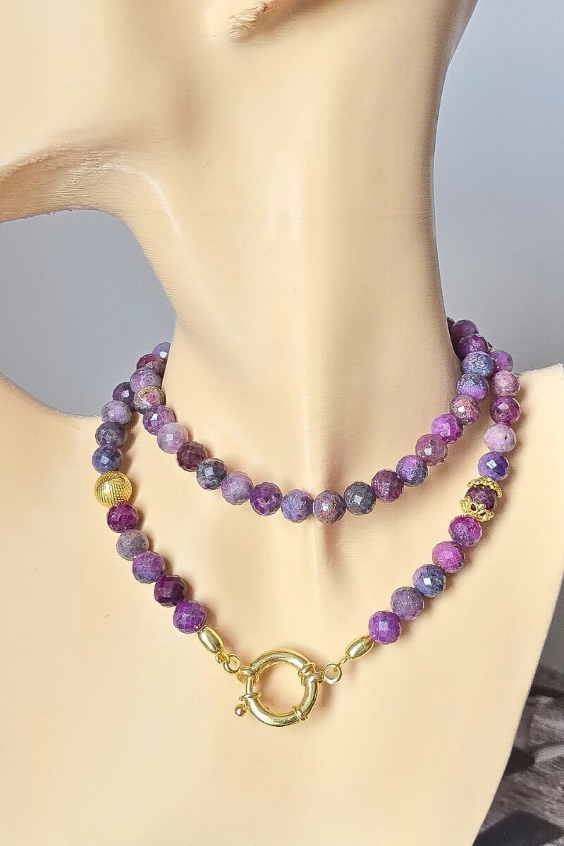 Ece Yakut Doğal Taş Tasarım Kolye-1 (925 Ayar Gümüş Üzeri 14K Altın Kaplama)