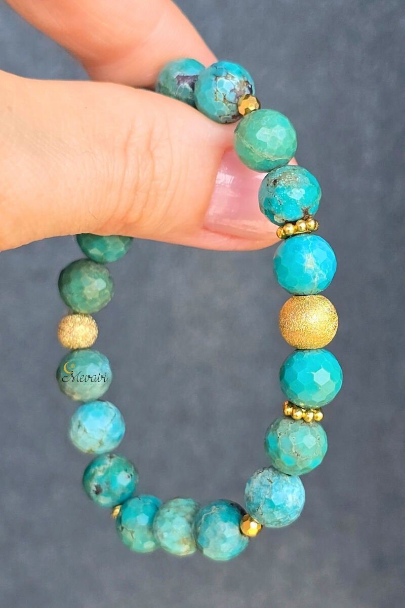 Eliza Turkuaz Doğal Taş Tasarım Bileklik-1 (925 Ayar Gümüş Üzeri 14K Altın Kaplama)
