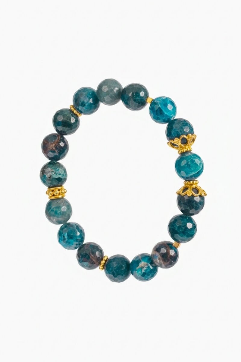 Gemma Apatit Doğal Taş Tasarım Bileklik-10mm (925 Ayar Gümüş Üzeri 14K Altın Kaplama)