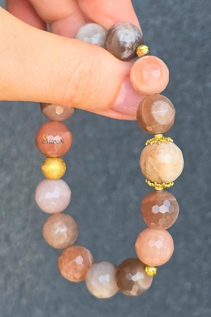 Hera Güneş Taşı Doğal Taş Tasarım Bileklik-4 (925 Ayar Gümüş Üzeri 14K Altın Kaplama)