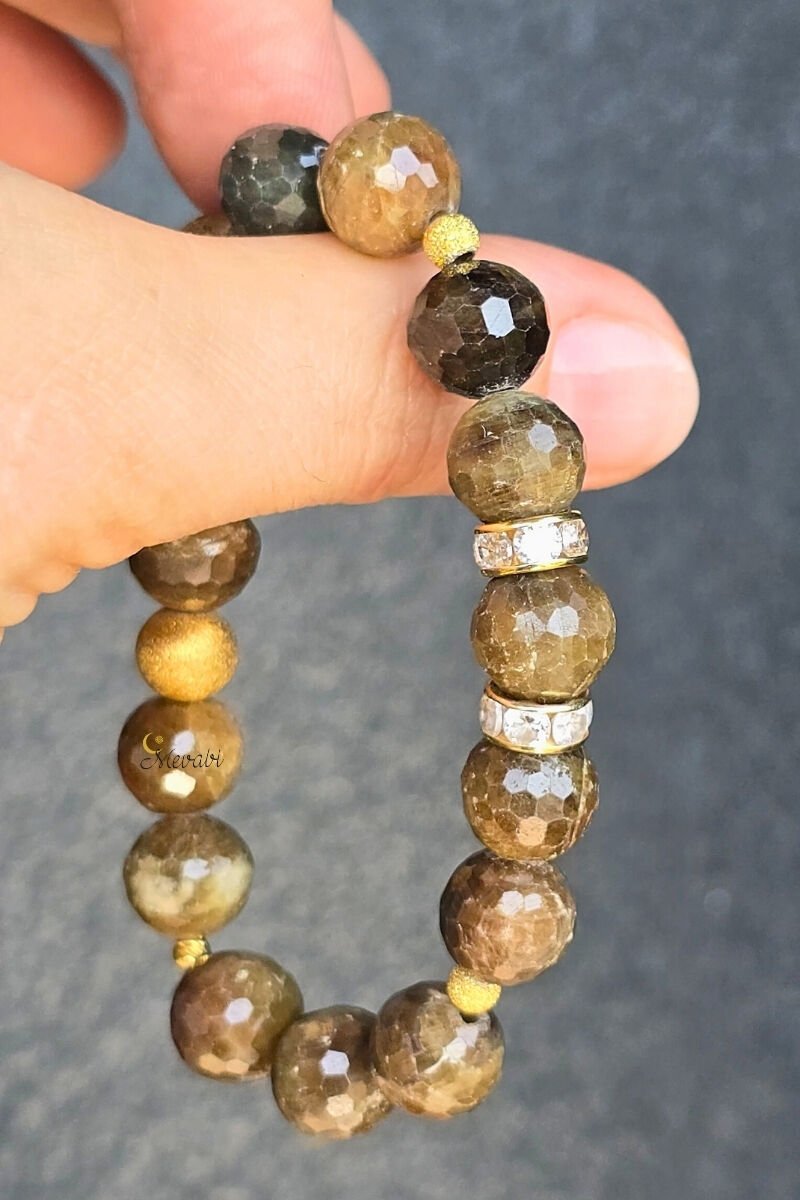 Hevin Safir Doğal Taş Tasarım Bileklik-3 (925 Ayar Gümüş Üzeri 14K Altın Kaplama)