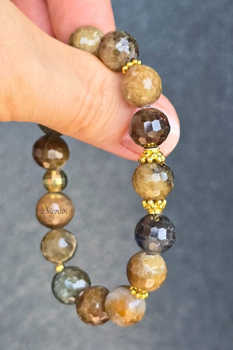 Hevin Safir Doğal Taş Tasarım Bileklik-1 (925 Ayar Gümüş Üzeri 14K Altın Kaplama)
