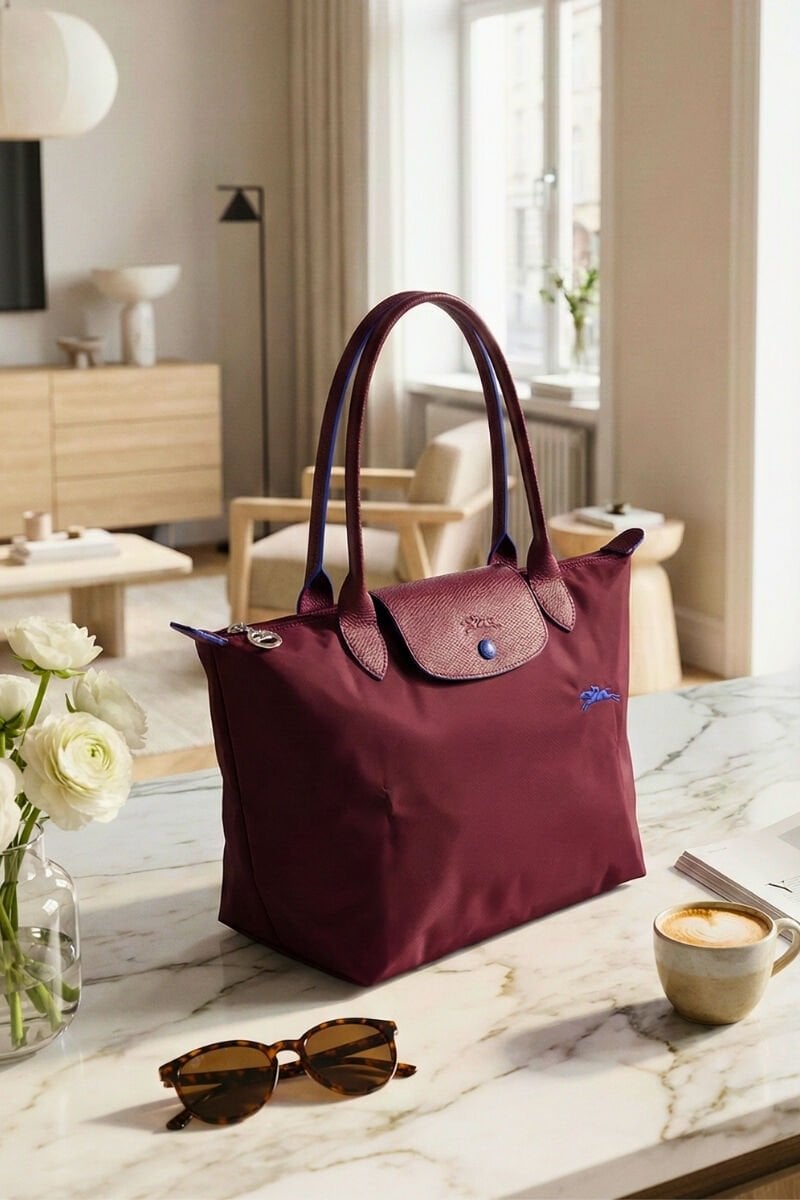 İthal Long.Champ Le Pliage Omuz Çantası M - Bordo