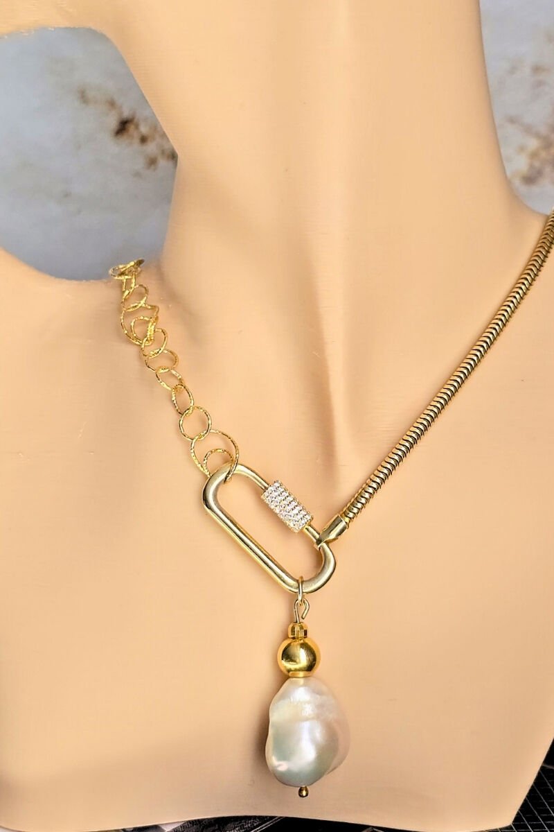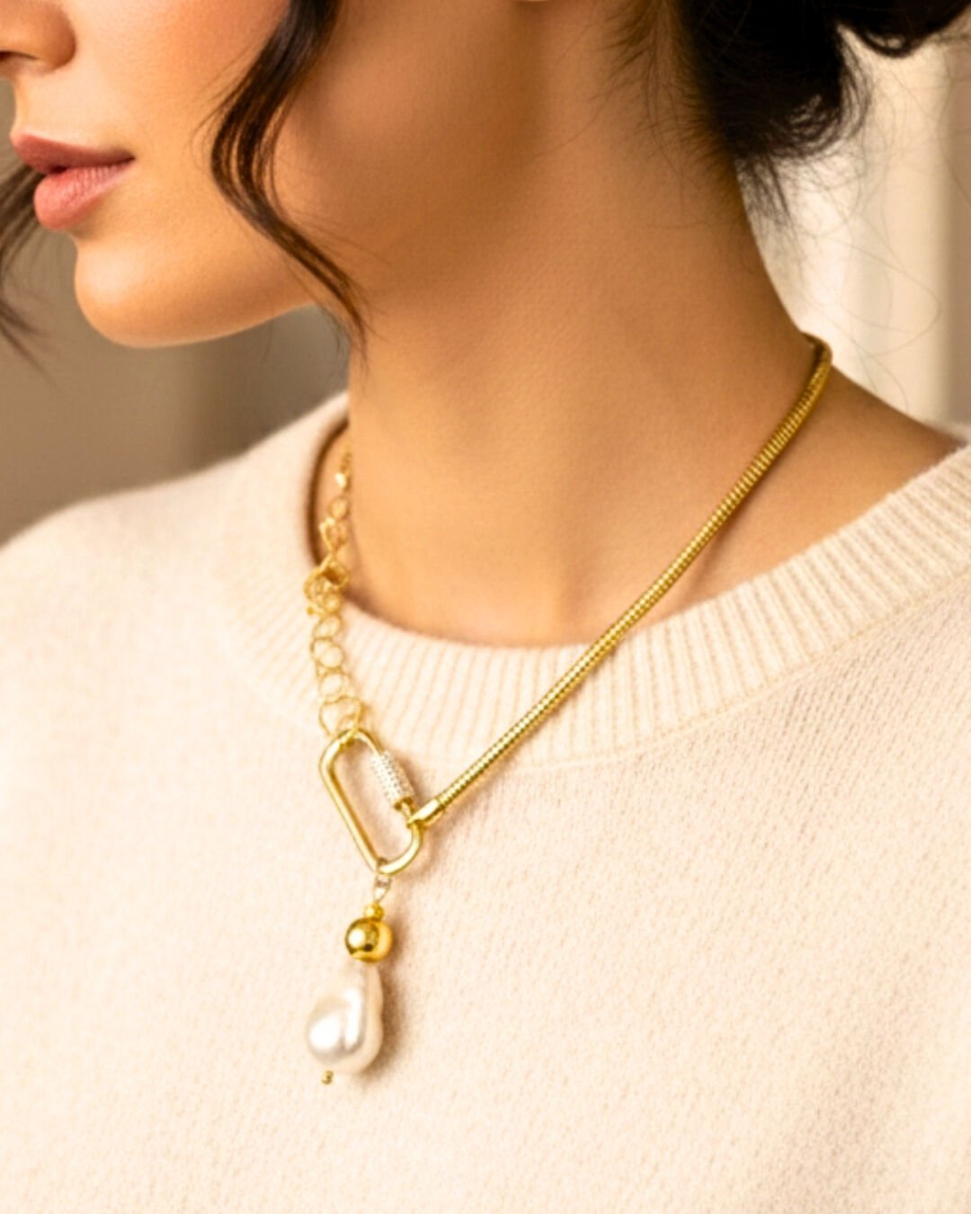 Majori Barok İnci Charm Doğal Taş Tasarım Kolye (925 Ayar Gümüş Üzeri 14K Altın Kaplama)