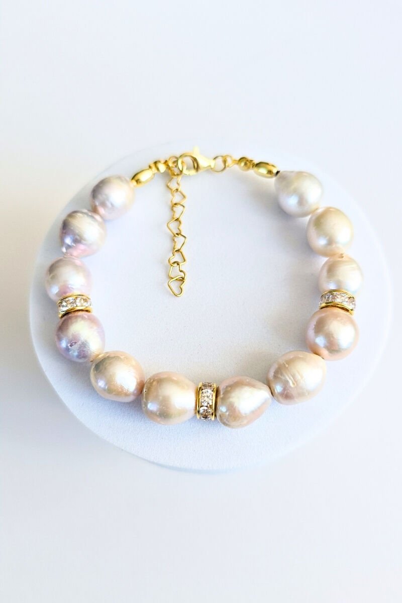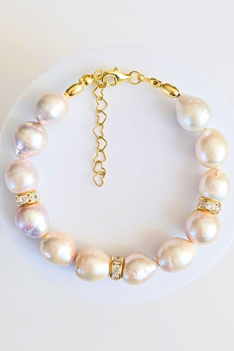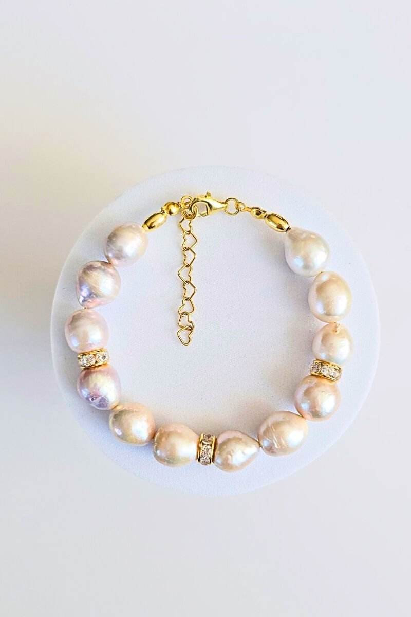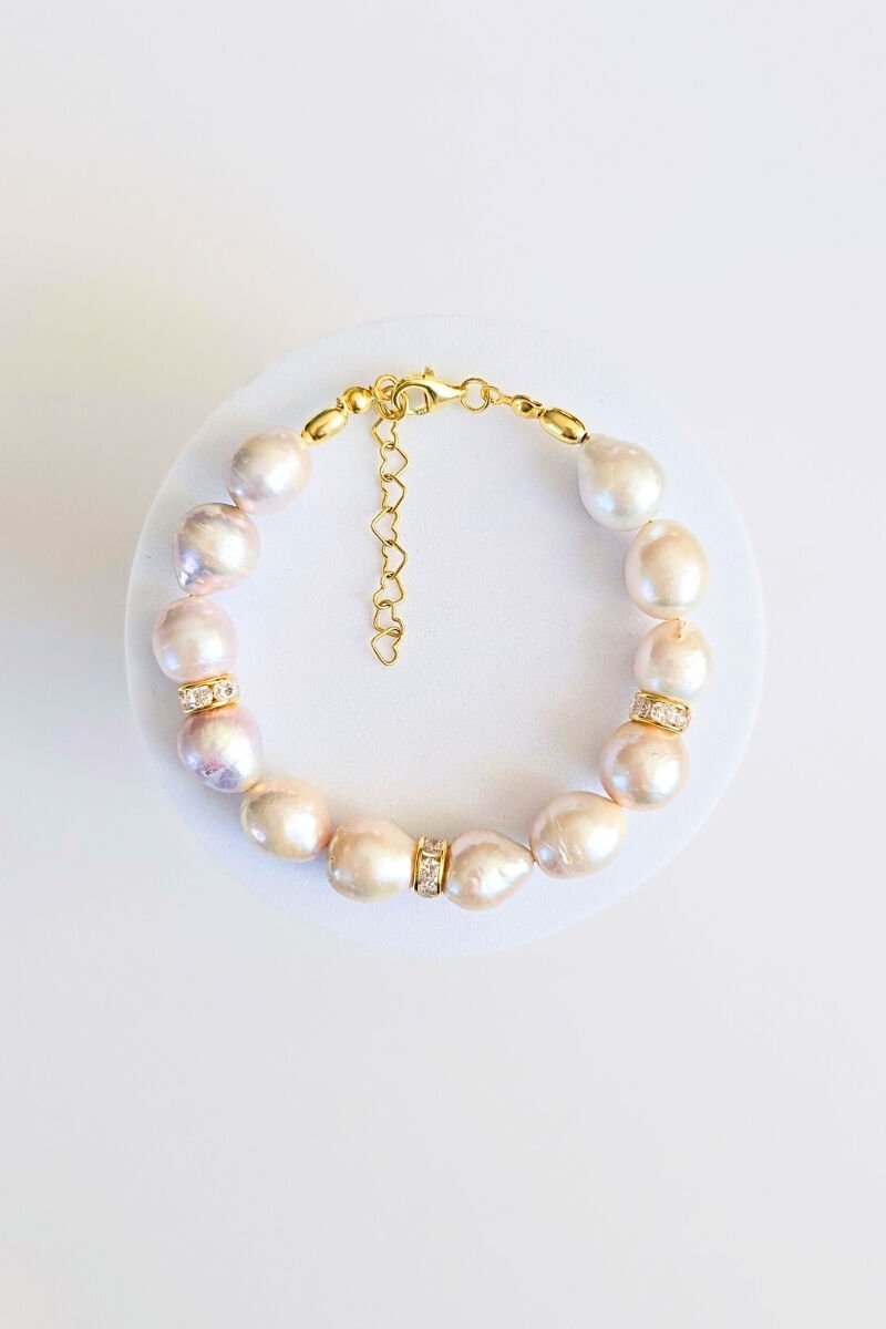 Majori Barok İnci Doğal Taş Tasarım Bileklik (925 Ayar Gümüş Üzeri 14K Altın Kaplama)