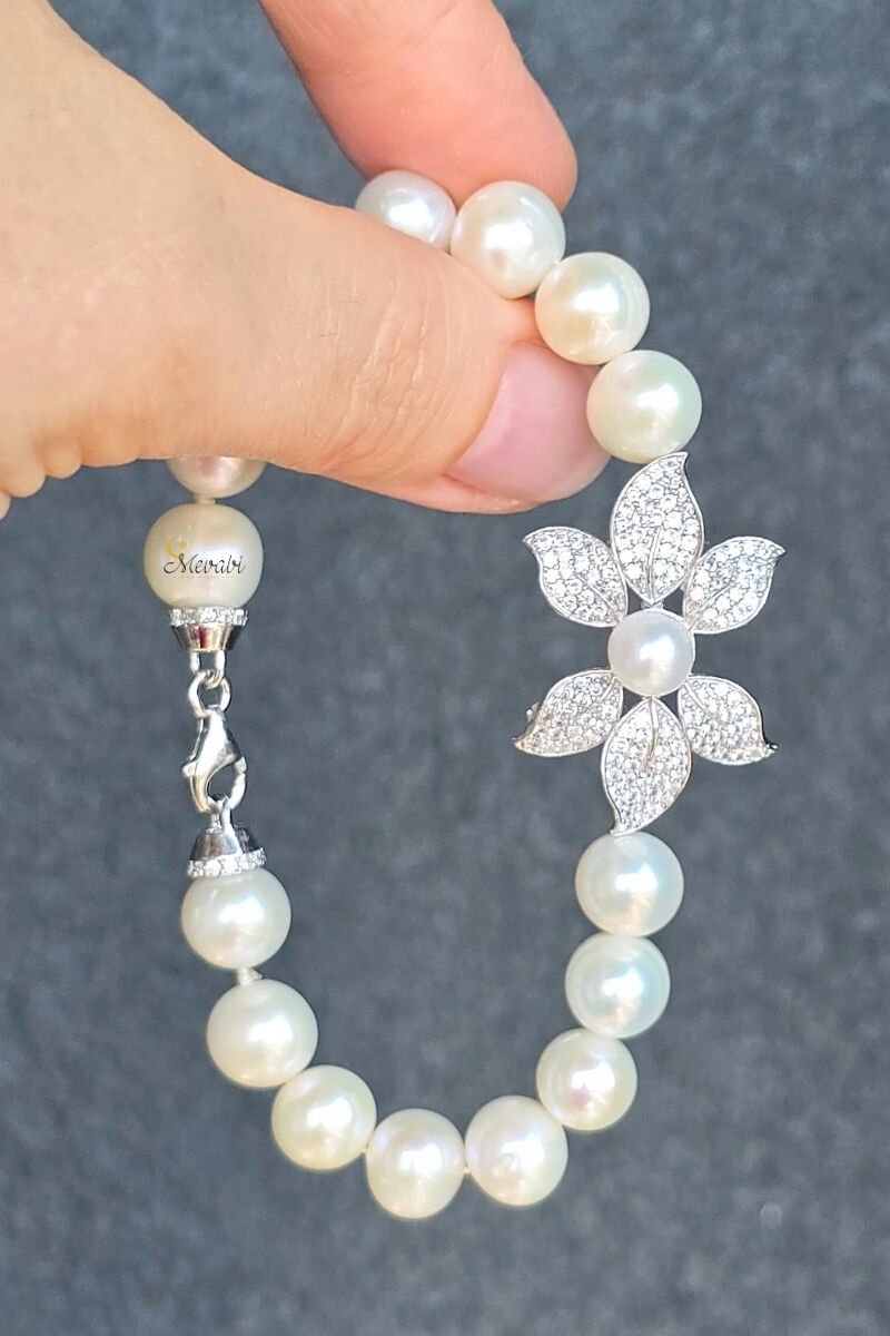 Majori Gerçek İnci Doğal Taş Tasarım Bileklik-9 (925 Ayar Gümüş)