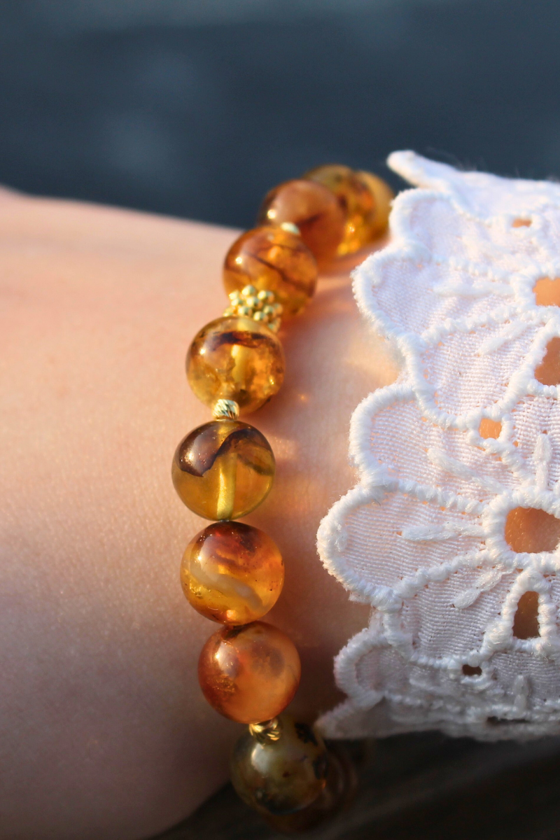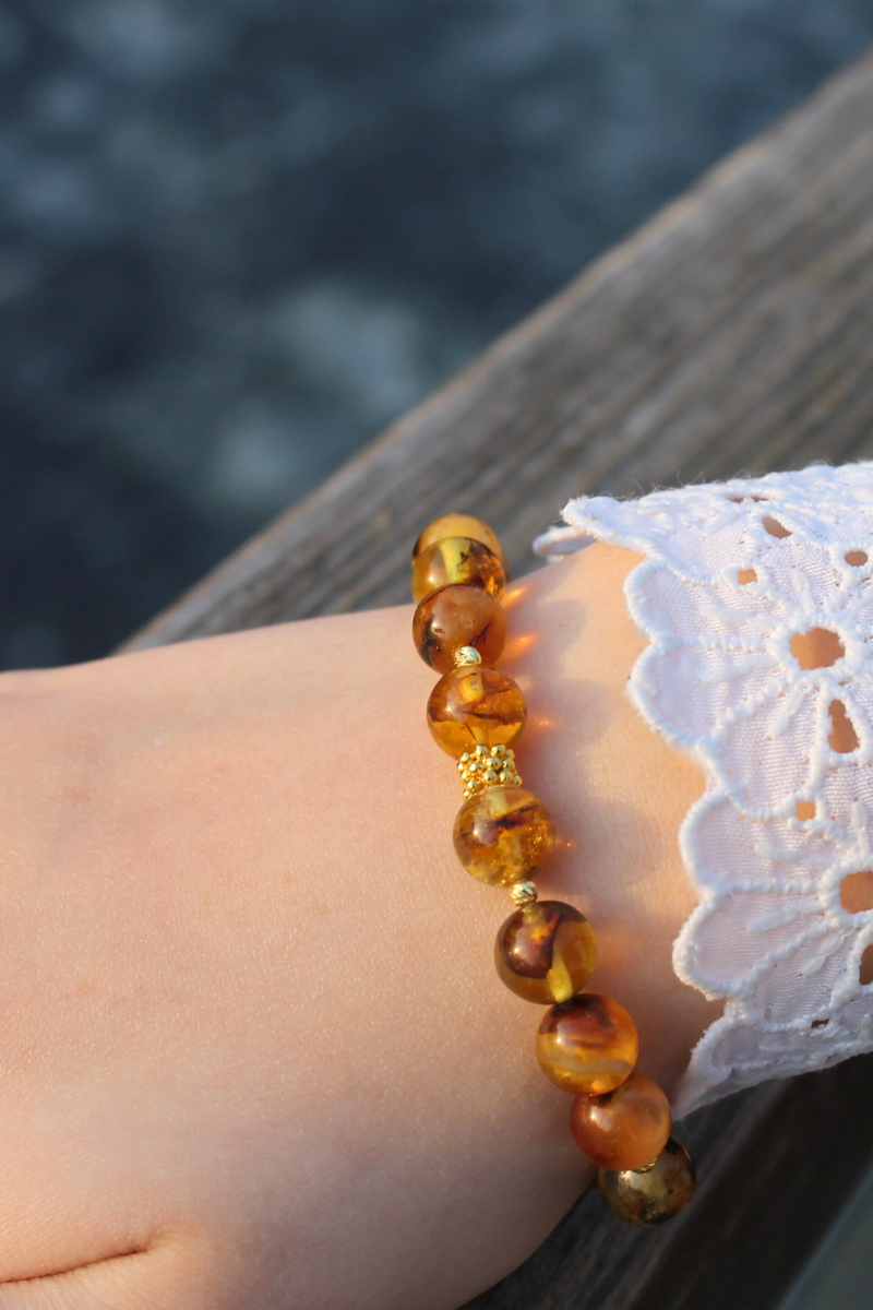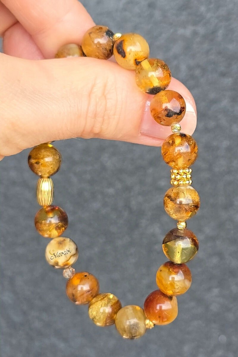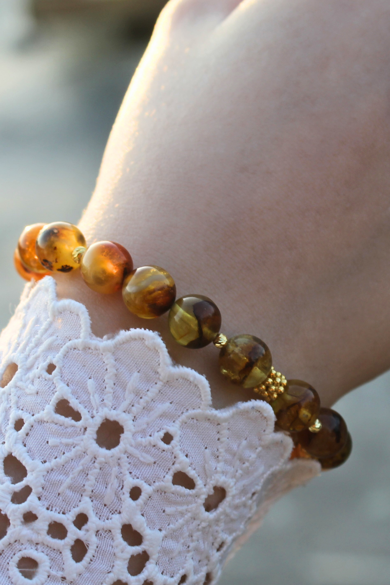 Nicole Kehribar Doğal Taş Tasarım Bileklik-1 (925 Ayar Gümüş Üzeri 14K Altın Kaplama)