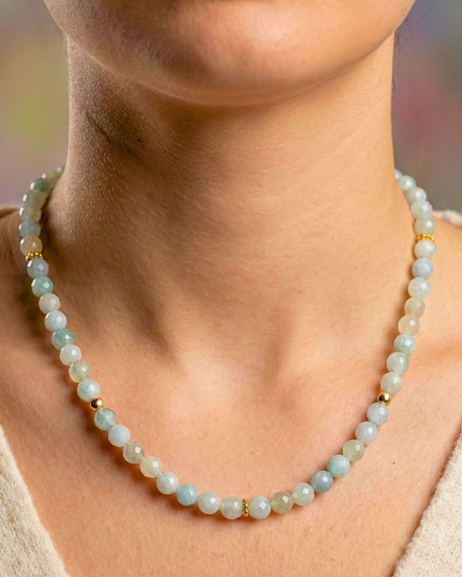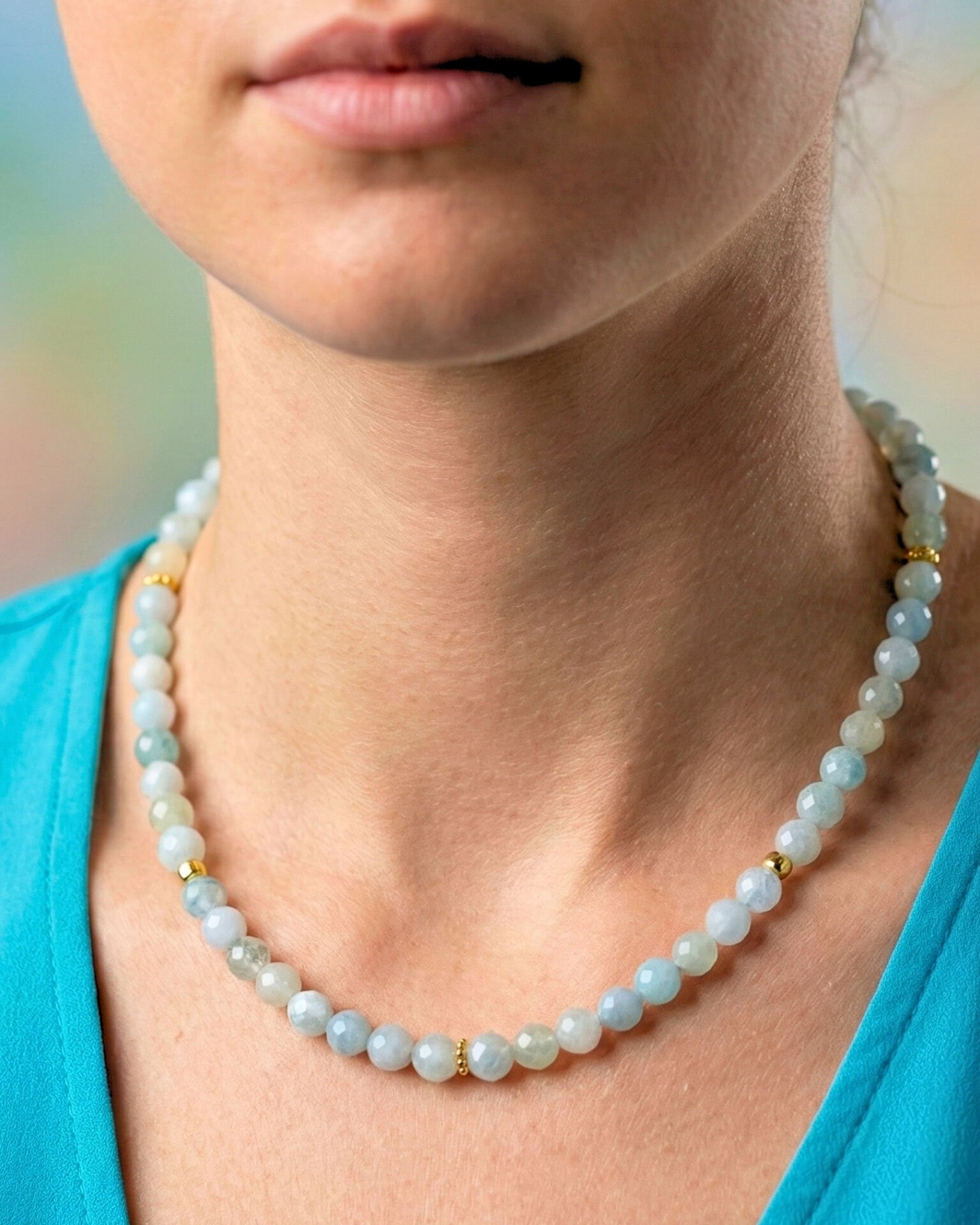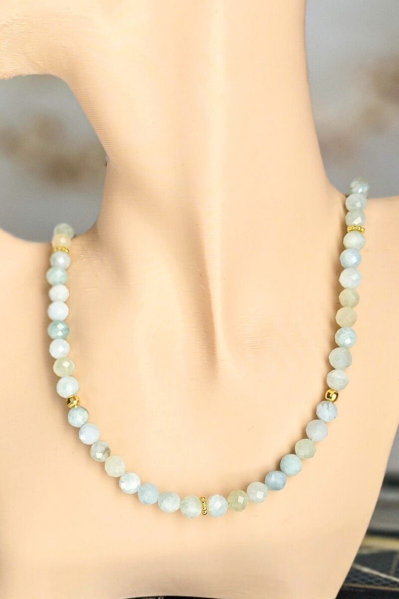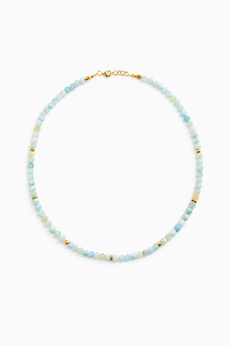 Patrice Akuamarin Doğal Taş Tasarım Kolye (925 Ayar Gümüş Üzeri 14K Altın Kaplama)
