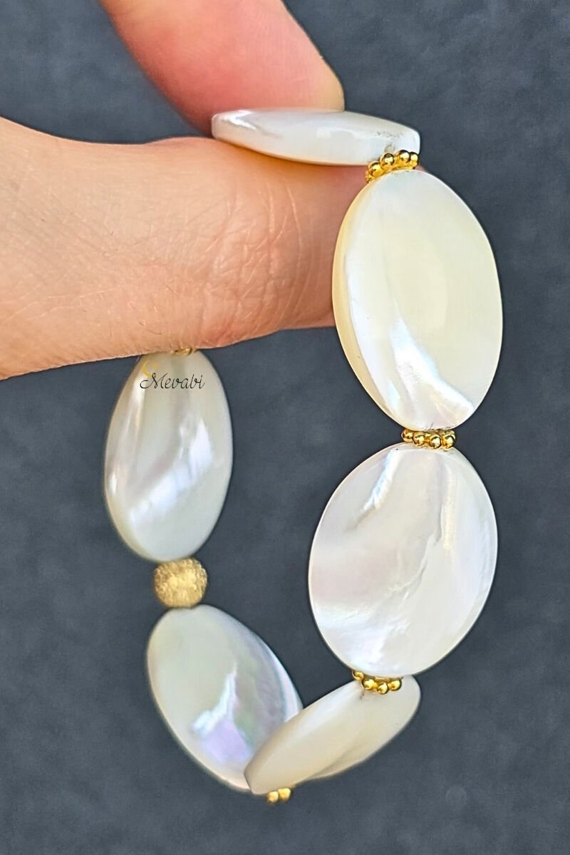 Selen Sedef Doğal Taş Tasarım Bileklik-1 (925 Ayar Gümüş Üzeri 14K Altın Kaplama)