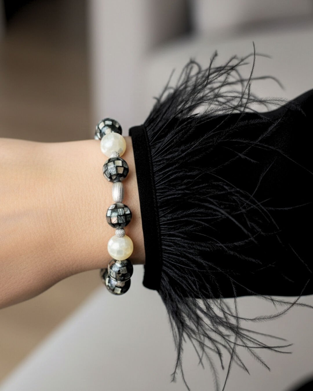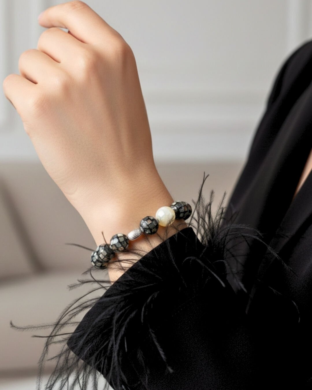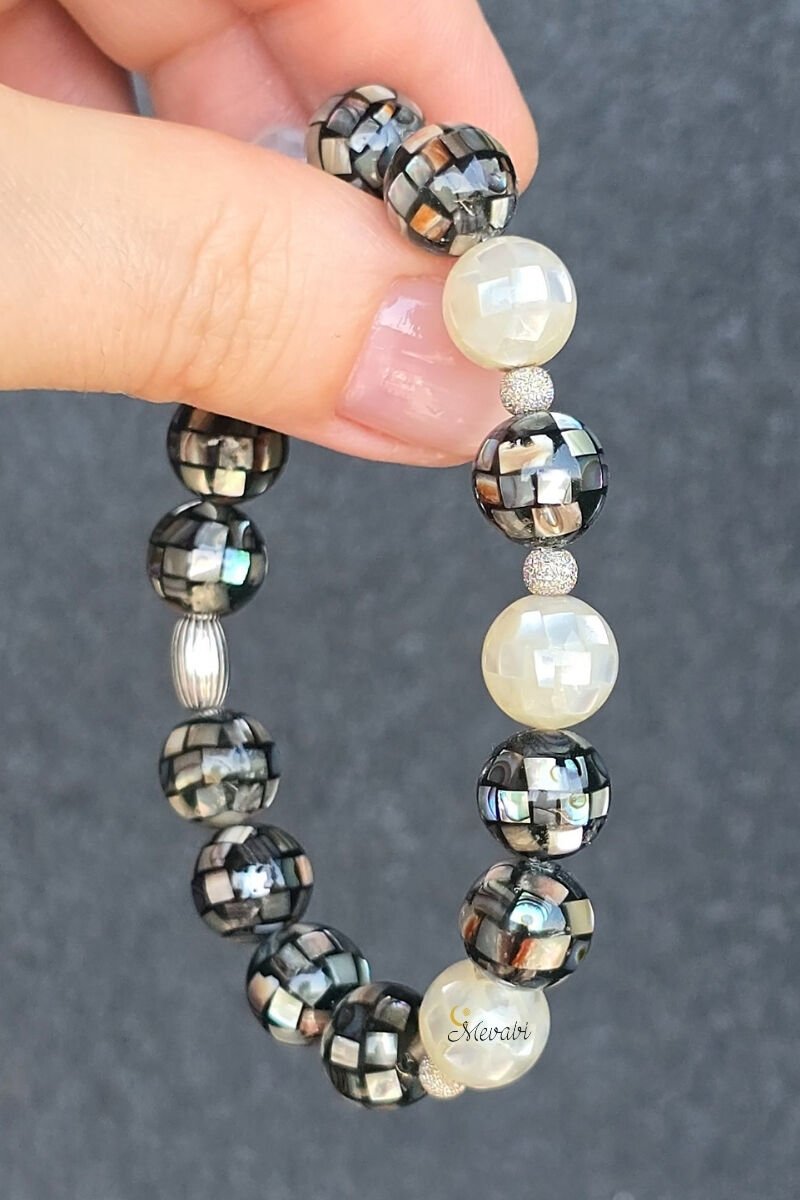 Selen Sedef Doğal Taş Tasarım Bileklik-3 (925 Ayar Gümüş Üzeri 14K Altın Kaplama)