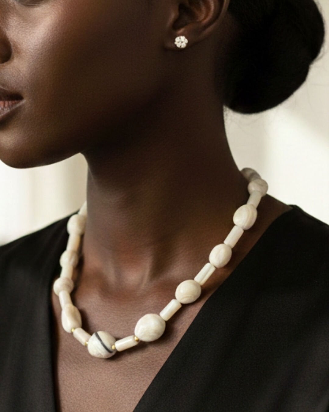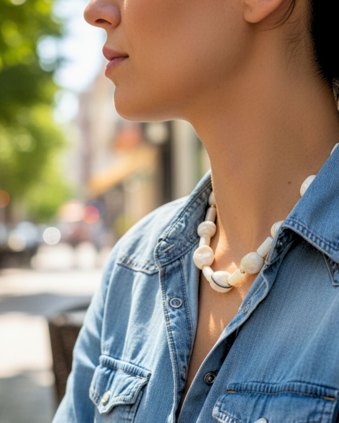 Selen Sedef Doğal Taş Tasarım Kolye (925 Ayar Gümüş Üzeri 14K Altın Kaplama)