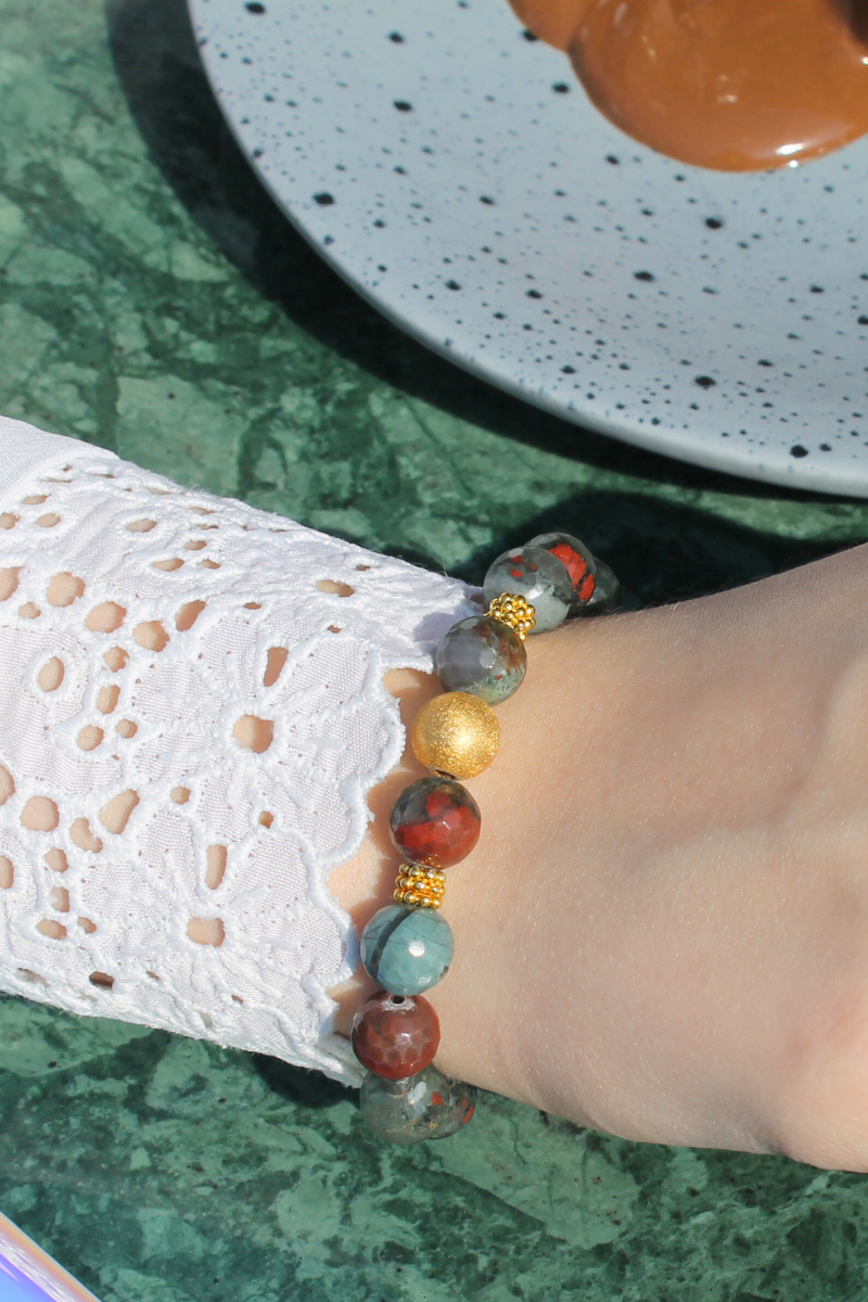 Tomris Kantaşı Doğal Taş Tasarım Bileklik-1 (925 Ayar Gümüş Üzeri 14K Altın Kaplama)