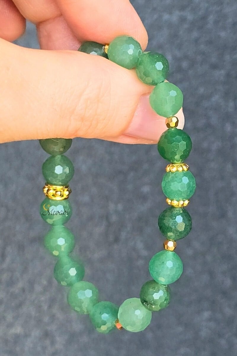 Ülgen Aventurin Doğal Taş Tasarım Bileklik-1 (925 Ayar Gümüş Üzeri 14K Altın Kaplama)