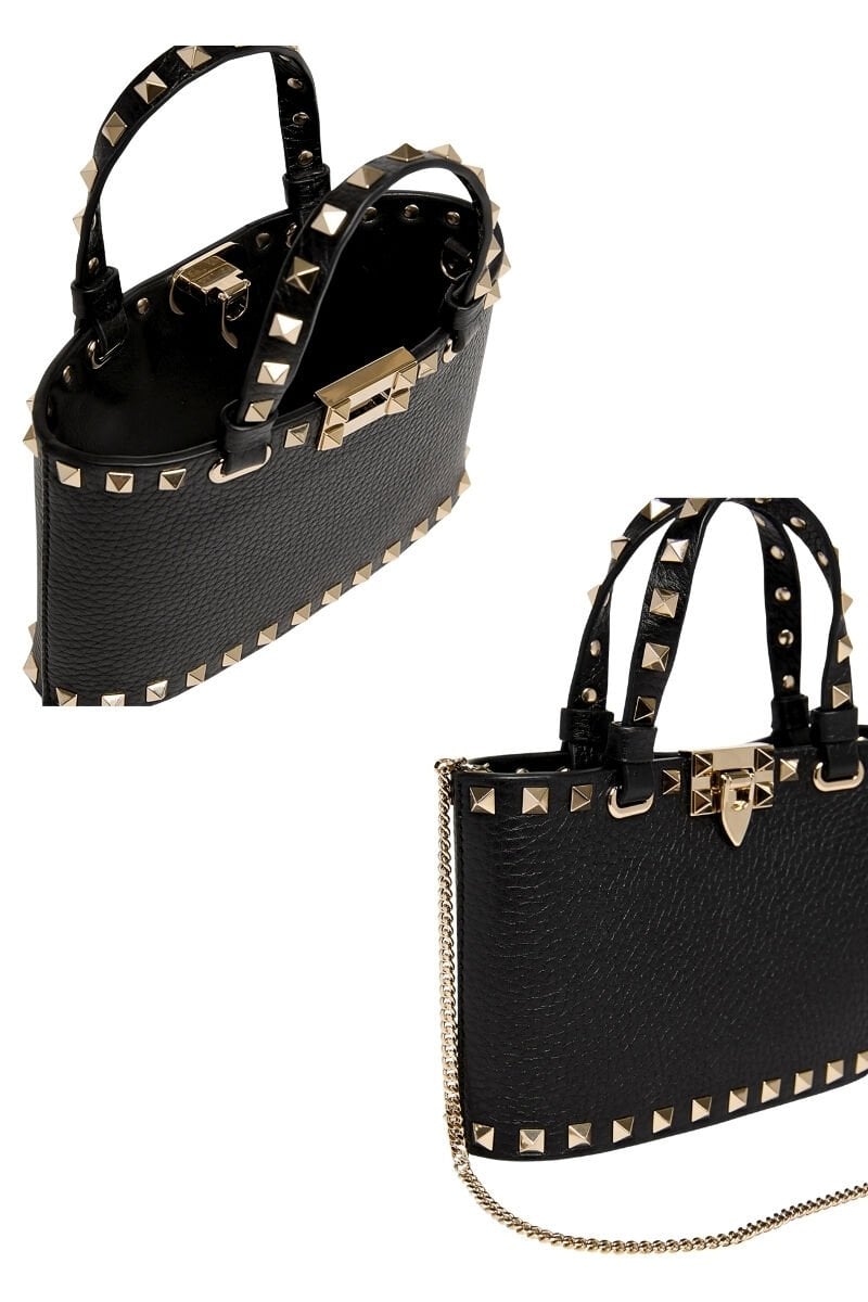 Rockstud süslemeleri, bu mini çantaya sağlam ve lüks bir hava katıyor. Cesurca kadınsı olan bu çanta, zincir askılı ve çift kulplarına kadar çivilerle süslü, küçük, damarlı suni dana derisi gövdesiyle dikkat çekiyor. İçerisindeki birden fazla kart yuvası, eşyalarınızı düzenli bir şekilde saklamanızı sağlıyor.