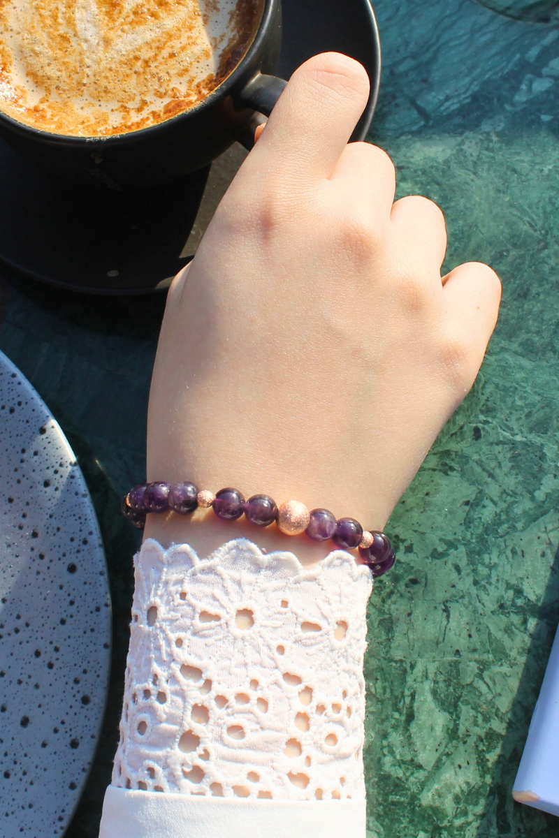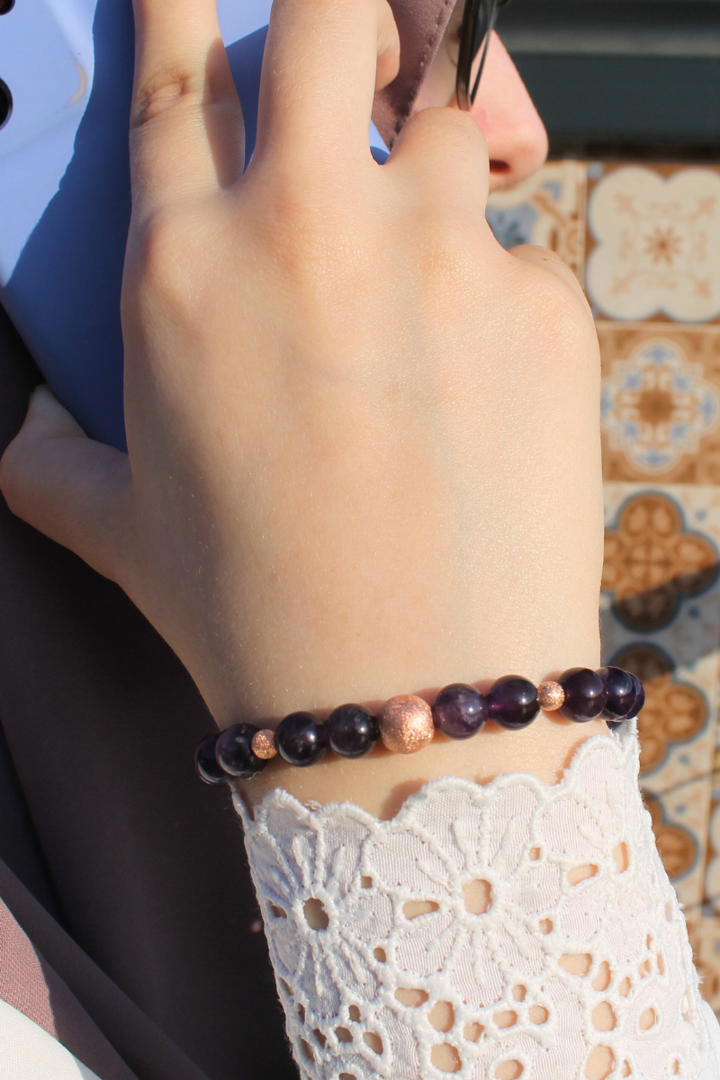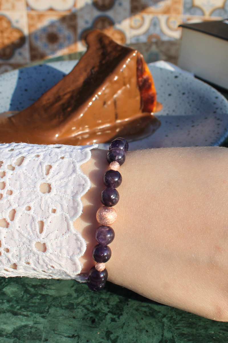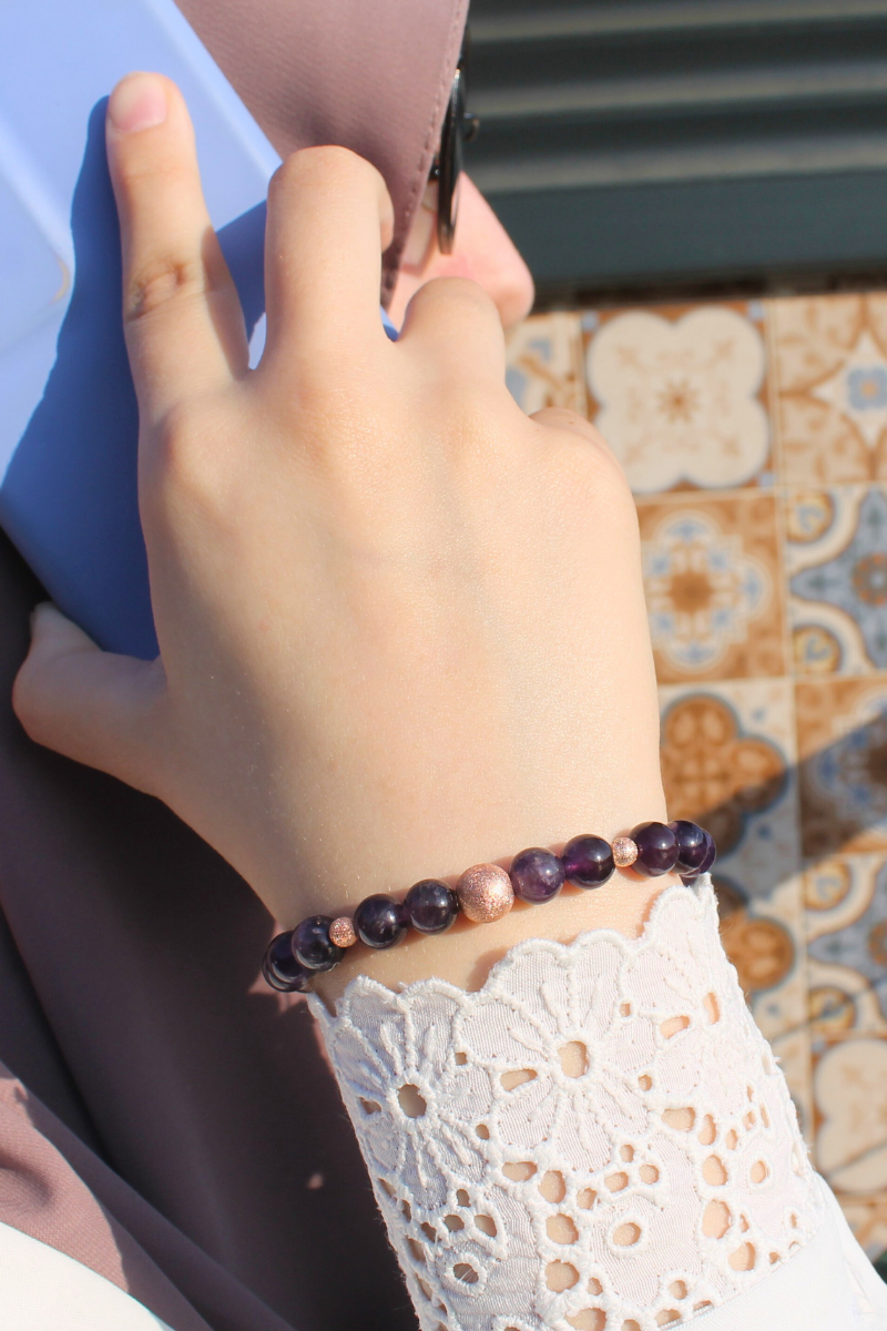 Zeren Ametist Doğal Taş Tasarım Bileklik-1 (925 Ayar Gümüş Üzeri Rose Altın Kaplama)