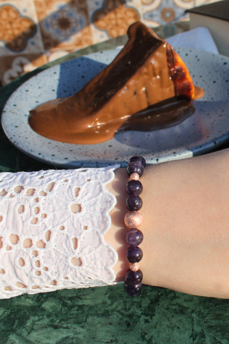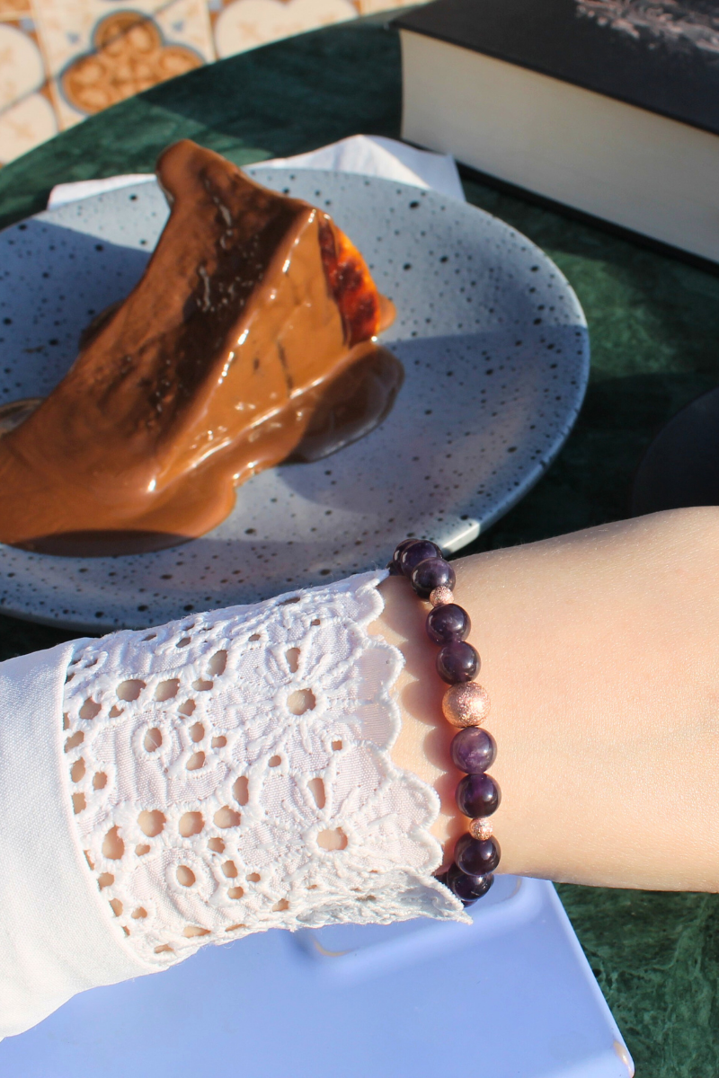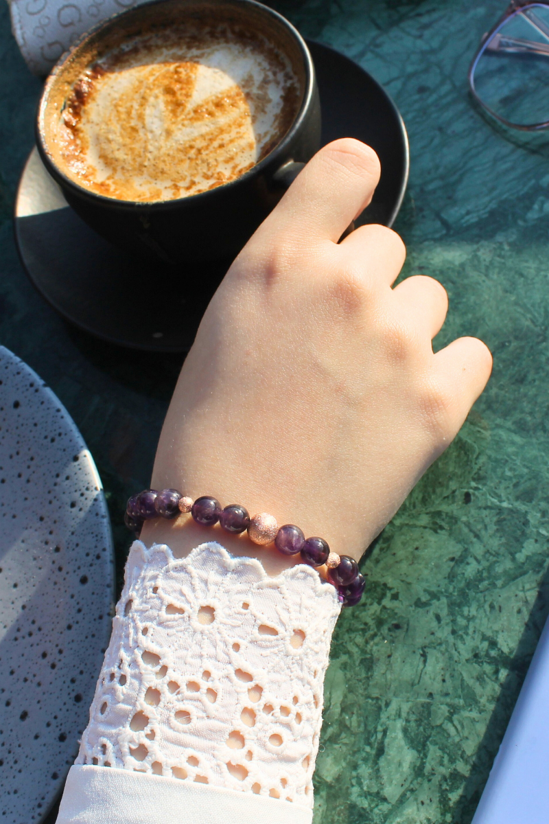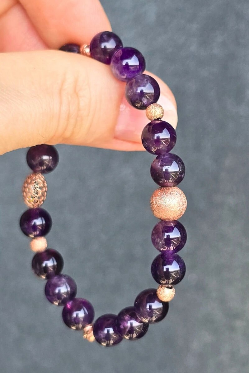 Zeren Ametist Doğal Taş Tasarım Bileklik-1 (925 Ayar Gümüş Üzeri Rose Altın Kaplama)