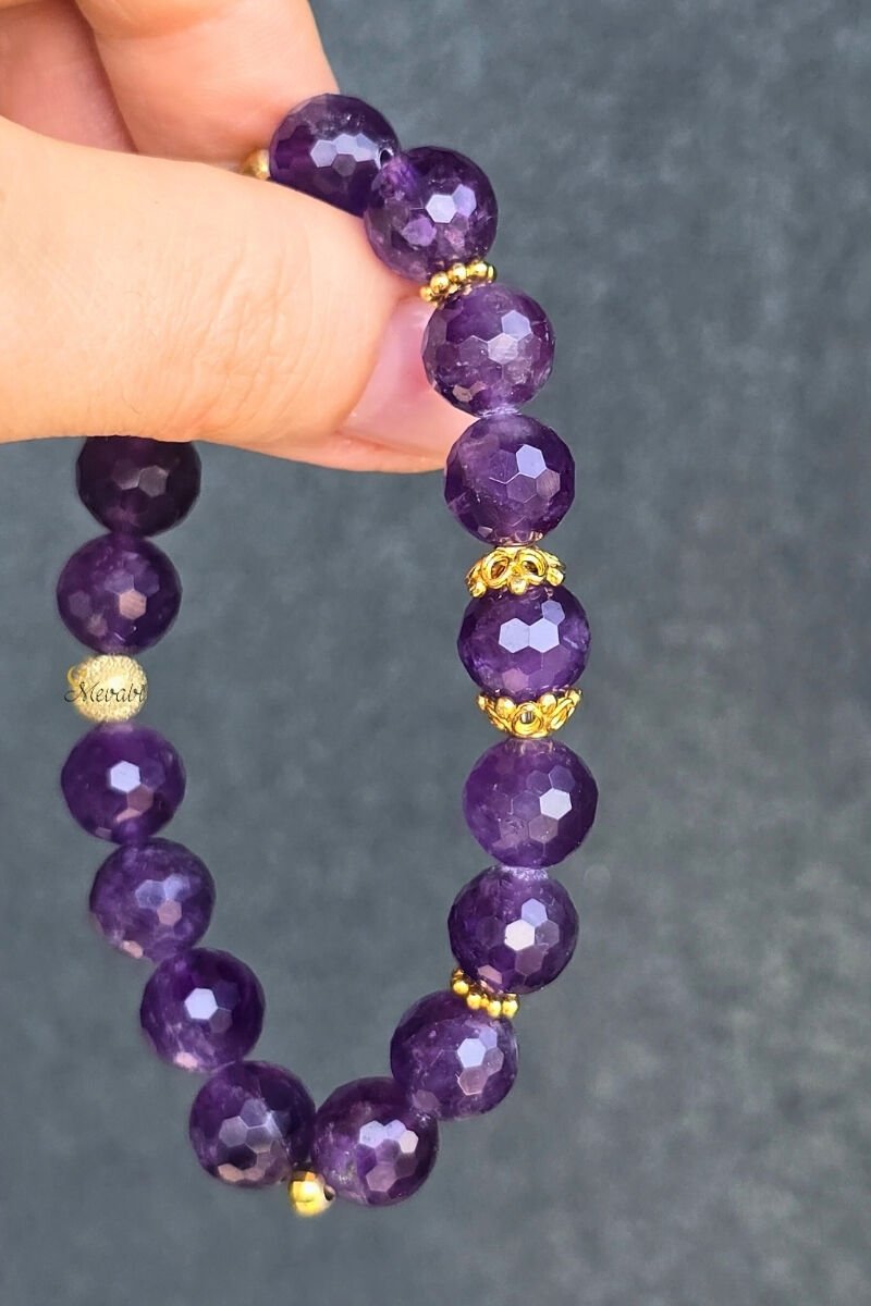 Zeren Ametist Doğal Taş Tasarım Bileklik-4 (925 Ayar Gümüş Üzeri 14K Altın Kaplama)